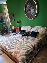 Splendido letto classico matrimoniale in legno con boiserie Completo di materasso king size e doghe in legno Struttura e testiera in massello Testiera con cuscinoni imbottiti alcantara Giroletto in boiserie