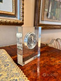 Vendesi nuovo orologio da tavolo / mensola in vetro trasparente del celebre marchio Claraluna, adattissimo per essere riposto su una scrivania, una libreria a scaffali o un comó / madia.
