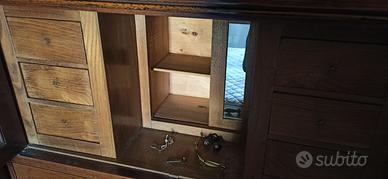 CARATTERISTICHE -Epoca: Inizi del 1900 (1900-1920) - Stile Liberty/Art Nouveau italiano - Materiale: Legno massello pregiato - Condizioni: Ottime, perfettamente conservato - Provenienza: Artigianato italiano d'epoca DESCRIZIONE Magnifico Secretaire a Cassettone (in francese, Secrétaire-commode o Armoire-secrétaire) d'epoca dei primi del '900, autentico pezzo d'antiquariato italiano. Mobile di alta qualità artigianale con: Struttura superiore con ante a specchio e cassetti interni organizzati Colonne tornite tipiche dello stile Liberty Cassettiera con 4 ampi cassetti nella parte inferiore Hardware originale con maniglie d'epoca in ottone Lavorazione artigianale con dettagli raffinati ORGANIZZAZIONE INTERNA - Scomparti multipli nella parte superiore - Piccoli cassetti interni per accessori - 4 cassetti grandi nella base - Ante con specchi originali IDEALE PER - Camera da letto classica/vintage - Collezionisti di antiquariato - Arredamento di prestigio - Casa di campagna/rustica elegante PREZZO: €600 (trattabili) ZONA: Casoria (NA) CONTATTI Solo interessati seri. Possibilità di visionare su appuntamento. RITIRO A CARICO DELL'ACQUIRENTE *Mobile d'epoca autentico - Occasione per intenditori* #antiquariato #mobiled'epoca #guardaroba #liberty #primi900 #vintage #arredamento
