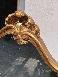 Aggiungi un tocco di eleganza senza tempo alla tua casa con questo raffinato specchio a tre ante (trittico). Perfetto per una camera da letto classica, sopra una toeletta o come pezzo d'accento in un ingresso sofisticato. Stile: Design barocco/retrò con eleganti linee sagomate. Cornice: Finitura color oro con dettagli intagliati sulla sommità e sulla base. Struttura: Composto da tre pannelli, ideale per una visione angolata o per arredare ampie superfici. Condizioni: Ottime condizioni generali, vetro integro e cornice ben conservata (come da foto). Ritiro a mano,a secondo della zona posso consegnare io personalmente.