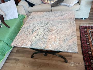 Splendido tavolino in acciaio e granito 90x90x54cm