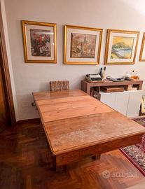 vendo SPLENDIDO e BELLISSIMO tavolo antico degli anni 30'. Il mobile è estendibile passando da una capienza di 4 persone fino ad una di 8. Ideale, dunque, per pranzi e cene in famiglia, in quanto si sta larghi in 8 persone. Il tavolo è sempre stato nel salone di casa mia e non è mai stato utilizzato, nemmeno per cene o come ripiano da lavoro. Vendo con assi purtroppo con una tonalità di legno diversa. Vendo a malincuore per inutilizzo. Prezzo trattabile.