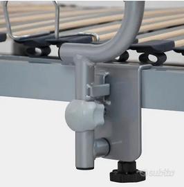 sponda universale per letto, utilizzabile sia su lato destro che sinistro, molto robusta e stabile, sistema di fissaggio facile e adattabile a tutti i letti sia standard, ortopedici e elettrici. ha un sistema di chiusura e protezione contro le aperture involontarie. lunghezza 115cm Altezza 46cm