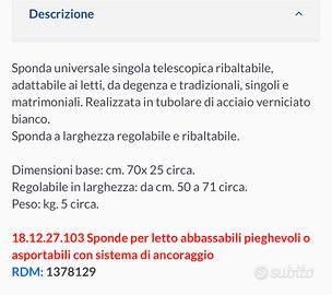 Vendo sponda anticaduta per anziani mai usata per letto si gilo i matrimoniali Vedi dimensioni nella foto
