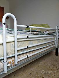 Sponda sanitaria letto anticaduta anziani e disabili. Universale e adattabile a qualsiasi dimensione di letto. Possibilità di alzare e abbassare. Colore bianco, in acciaio. Marca Moretti. Praticamente nuove.