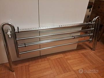 Vendo sponde anticaduta telescopiche, regolabili e adattabili a tutti i letti a rete fissa non articolata (senza alzagambe o alzaschienale). Struttura in acciaio cromato che si infila tra il materasso e la rete letto. Usate pochissimo, pari al nuovo.
