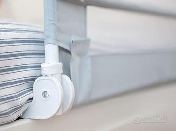• BARRIERA PIEGHEVOLE, CON TESSUTO RIMUOVIBILE E LAVABILE: si può alzare e abbassare per rifare il letto o sdraiarsi; tessuto molto resistente con una rete che permette al bambino di vedere e respirare; tutto il tessuto può essere rimosso e lavato