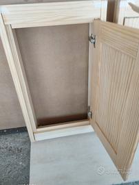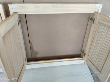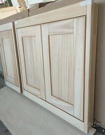 ante in legno massello con telaio per cucina in muratura, telai e sportelli realizzati in legno massello di Pino selezionato senza nodi, forniti già montati, in legno massello naturale da verniciare già carteggiato.