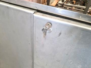 sportello doppia anta a incasso inox usato, si tratta di un pannello a incasso totalmente in acciaio inossidabile con cornice strutturale e due ante dotate di serratura e complete di chiave. dimensioni: 13473cm sp. 3cm, incasso 131X70cm, sp. 2cm