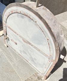VENDESI sportello in ferro/acciaio rivettato (no saldature) da usare nel forno/focolaio (come da foto allegate) misure cm.45 x cm.45 compreso di telaio da murare nella struttura-