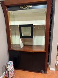Mobile Spositore per gioielli, in legno e vetro con luci al interno e chiave di sicurezza.