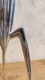 Realizzato in alluminio pressofuso lucido, questo spremiagrumi trascende la sua funzione originaria per diventare una vera scultura domestica. La sua forma aliena e provocatoria ha segnato un punto di svolta nel modo di concepire gli oggetti d’uso quotidiano, rendendolo un must-have per collezionisti, appassionati di design e architettura.