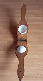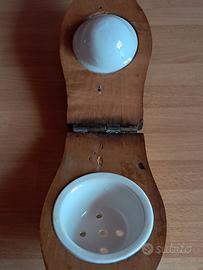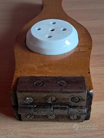 Spremiagrumi antico primi anni 1900, in legno e ceramica, apertura totale cm 50, lunghezza da chiuso cm 25, larghezza cm 8, spessore cm 3.5.