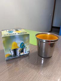 Spremiagrumi in acciaio e plastica, nuovo completo della confezione. H cm 10