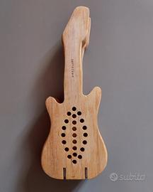 Spremiagrumi Kikkerland a forma di chitarra, mai utilizzato. In legno e acciaio inossidabile. Dimensioni: 7,4 x 19,7 x 3,8 cm . Guitar Citrus Squeezer