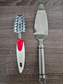 2 attrezzi per cucina, uno per togliere agilmente le squame dai pesci e l altro per tagliare e servire le torte a fette. nuovi in acciaio.