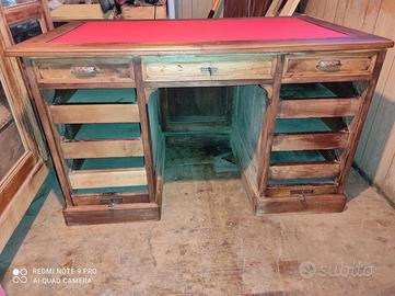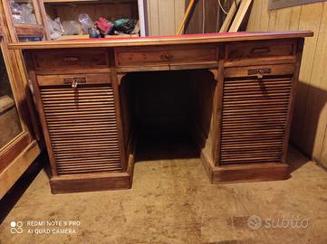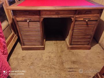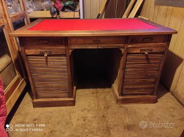 Scrivania ministeriale in rovere primi 900 con doppia serranda piano in pelle rosso. 135x80 h 80