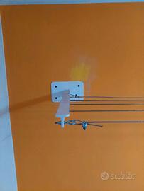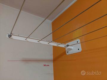 Vendo nr. 02 staffe a muro per stendibiancheria, ideale per lenzuola o coperte. Applicabili a muro sia all’interno che all’esterno delle mura di casa. Quattro fori per staffa garantiscono un’ottima “presa” a muro. Verniciabili e resistenti. Ogni braccio è dotato di 6 fori. Misure: placche cm. 20x12,5 – lunghezza bracci cm. 58. Includo in regalo la corda.