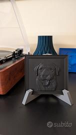 Quadri personalizzabili in bassorilievo con cornice di animali domestici in stampa 3D con stand. Dimensioni 10x10 cm, altre misure disponibili.