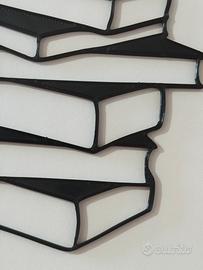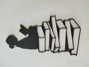 Bellissima stampa 3D raffigurante una ragazza seduta su una pila di libri e intenta a leggere.