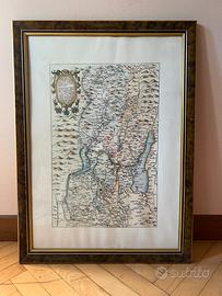 Stampa a colori del Lago di Garda e zone limitrofe. Misura 55 x77 cm circa Cornice simil radica. Ben conservata.
