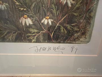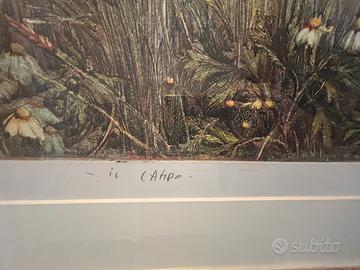 Vendo Stampa a colori “Il Campo” di Zambrelli Marco, completa di importante cornice in legno e foglia oro. Foglio cm 70 x 100. Esemplare XVIII / XXV anno 1994