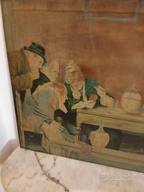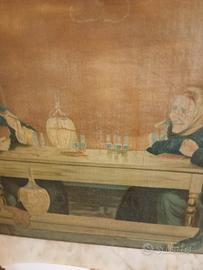 Stampa a colori su tela fine 800 ,scena di contadini in trattoria Mis H 49 ,Larghezza 80,a mio parere si può leggermente restaurare sui volti e poi lasciarla così,ha un suo fascino Può essere adatta per un ambiente un po' rustico o per una trattoria ecc Per eventuali interessati non cliccate subito per pagare ,ma prima desidero avere un contatto telefonico con voi Per la consegna direttamente da me oppure in contrassegno per posta Grazie