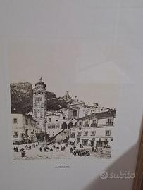 Originale stampa su pregiata carta amalfitana (Cartira Amatruda) raffigurante il Duomo di Amalfi. Incorniciata appositamente dal cornicia in legno chiaro. Misure cm 39x54.