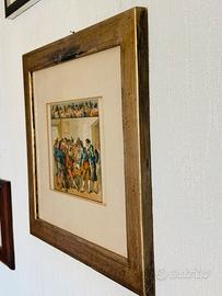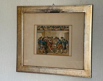 • Tecnica: Incisione su legno/rame acquarellata a mano (hand-colored). • Cornice: Bellissima cornice antica in foglia d'oro con vetro originale. • Soggetto: Scena di genere popolare, molto dettagliata e vivace. • Stato: Ottime condizioni vintage, patina del tempo autentica. Ritiro a Roma 00154/oppure spedizione veloce e atenta!