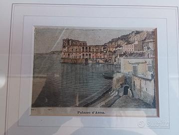 Xilografia originale del 1890 acquarellata a mano. Rappresentante Palazzo d'Anna, Napoli