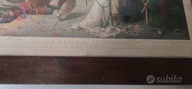 vendo stampa antica oleografica di V.Malinverno del 1894 rappresenta i vespri siciliani, rappresenta il quadro del pittore Erulo Eroli è italiano nato a Roma nel 1854 e morto nel 1996 sempre