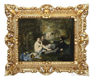 Riproduzione stampata su carta effetto tela del celebre dipinto "Colazione sull'erba" di Edouard Manet considerato il maggiore interprete della pittura pre-impressionista della seconda metà del '800 in Francia.