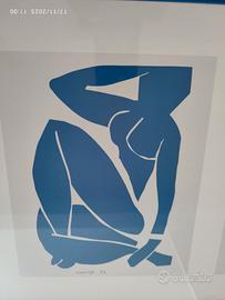 Vendo bellissima stampa di 4 Nude blu di Henry Matisse, raccolti in una semplice cornice di cm 3, dello stesso colore blu dei nudi, in perfette condizioni; la cornice in legno verniciato ha le seguenti misure in cm: 104X39.