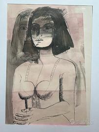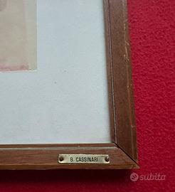 Stampa dí acquerello dell’artista Bruno Cassinari dalla Domenica del corriere anni 60 Cornice da sistemare Misure 33x40