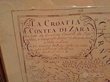 Stampa anticata della mappa geografica della "Croazia e Contea di Zara" dell'anno 1690. Completa di vetro e cornice misura cm.65x43. Per spedizione non in Locker.