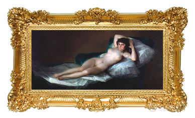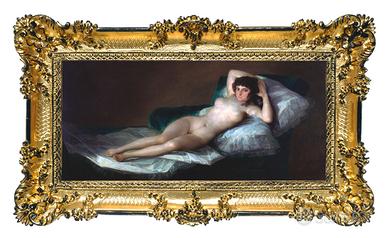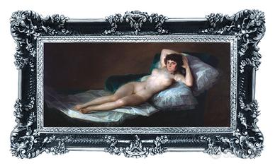 Stampa in alta qualità su PVC telato del famoso dipinto "Maja desnuda" del pittore Francisco Goya, tra i più importanti pittori spagnoli del periodo tra il 1700 e il 1800.