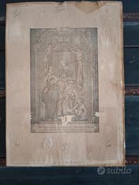 Stampa estratta da cornice con vetro piuttosto ingiallita e con sbucciature e segni dei santini che erano stati incollati sopra . Solo ritiro a mano a Genova Sampierdarena vicino Fiumara .