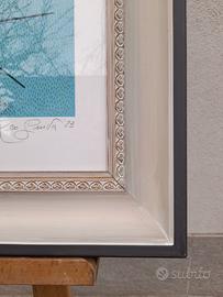 Serigrafia polimaterica artista Leo GUIDA, 60 tirature, dimensioni 70x50, con cornice dorata e laccata.. Misure esterne 62x82. Valore commerciale 280,00€. Prezzo trattabile. Nuova da negozio.