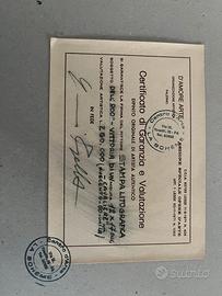 L'opera è completa di Certificato di Garanzia e Valutazione rilasciato dal "Centro d'Arte La Bohème" di Palermo, che ne attesta l'autenticità e l'epoca.