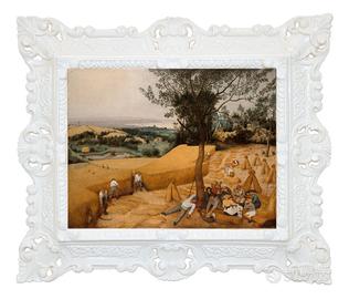 Riproduzione stampata su carta effetto tela del dipinto "The Harvesters - La Mietitura" di Pieter Bruegel il vecchio, tra le opere più famose del maestro olandese, realizzato a metà 1500.