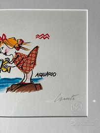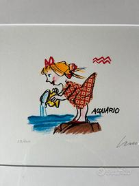 Serigrafia serie limitata Emanuele Luzzati autografata con cornice Con segno zodiacale Acquario Con cornice in legno e vetro 40 X 35 cm fatta fare su misura