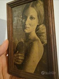 Oggetto vintage anni 60 raro, rappresentazione di una diva sexy in stampa su legno, pezzo introvabile e ben conservato, puccoli segni.