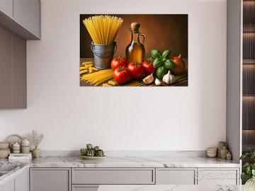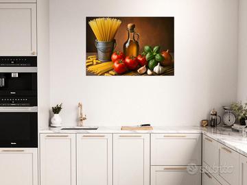 Questa tela di grandi dimensioni cattura l’anima della cucina italiana ed è ideale per arredare ambienti come: