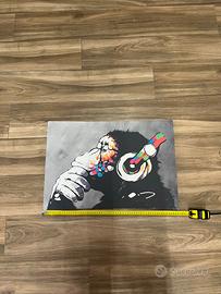 Stampa su tela di Wieco Art Dj monkey Bansky. Misure di prevenzione 46x66, qualche lieve segno sui lati ma in ottimo stato.