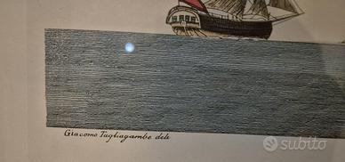 "Nave Mercantile Danese". Serigrafia del XX secolo che riproduce una rarissima stampa marittima italiana del XVIII secolo, TAGLIAGAMBE, Giacomo.. 55 x 75 cm.. Dedicata All' Ill.mo Sig. Paolo Barbound Capitano della Marina Reale Agente, e Console di S. M. Danese in Toscana.