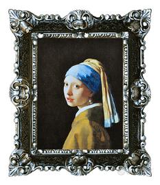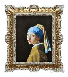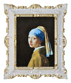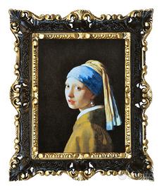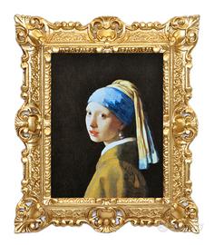 Riproduzione stampata su carta telata della Ragazza con il turbante, meglio conosciuto come la "Ragazza con l'orecchino di perla", uno dei dipinti più famosi del celebre pittore olandese Jan Vermeer.