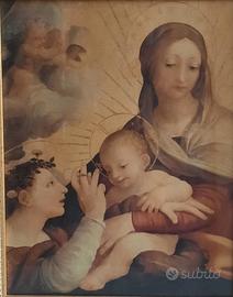 Stampa vintage d’arte: sposalizio mistico di s. Caterina d'Alessandria, 1519 del pittore Andrea Sabatini da Salerno, 36cm x 45cm, Cornica in legno dorata a torchon. Esposta a Nocera Inferiore, pinacoteca del convento di Sant' Antonio