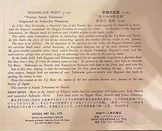 Stampa xerigrafata giapponese vintage, guerriero samurai Sasaki Takatsuna con certificato
