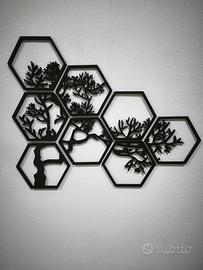 Wall Art & Decorazioni Parete: Pannelli decorativi a nido d'ape, sagome botaniche (soffioni, colibrì) e quadri a intaglio.