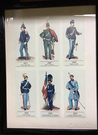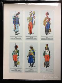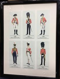 vendo sei stampe a colori di uniformi militari storiche complete di cornice (colore nero lucido) e vetro. come nuove. dimensioni: 35 (L) x 50 (H) cm. ritiro a domicilio. pagamento in contanti. euro 60 (sei)